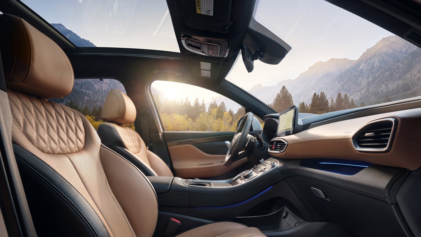 Sí: el Hyundai Santa Fe es un vehículo destinado para viajar en familia porque es amplio, cómodo, y seguro. Tiene disponible asientos de cuero y con solo tocar un botón el respaldo de la segunda de fila se pliega para que puedas subir mascotas o transportar cargas de gran volumen. Cuenta también con tecnologías de seguridad que te ayudan a prevenir accidentes, siendo algunas de ellas el Asistente para seguimiento de carril1 y el Monitor de puntos ciegos2. Sin embargo, con solo un vistazo puedes darte cuenta que el Santa Fe es más que un vehículo familiar: es un SUV llamativo que genera admiración y que inspira potencia. Con una parrilla más ancha y un diseño más agresivo, el Hyundai Santa Fe 2022 se roba todas las miradas y bajo su capó tiene disponible un motor turbo de 2.5 litros capaz de remolcar hasta 3,500 libras3. Te ofrece además tracción en las cuatro ruedas HTRAC4 para que domines con facilidad el más difícil de los caminos en Prince William Forest Park. ¡Nunca te aburrirás al volante!
